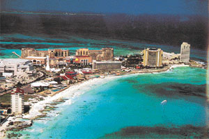 Bu tarihi şehir sizi Yukatan'a çekmek için yetmiyorsa, biraz da Cancun'dan bahsedelim. Cancun, Chichen Itza'nın iki saat kadar doğusunda Karayip denizinin kıyısında. Daha 20 yıl kadar önce küçük bir köy iken, şimdi Meksika'nın turizm gelirinin yüzde 25'ini karşılayan bir turizm cenneti. 20 yıl önce okyanus kıyısındaki 15 kilometrelik plajının bir ucunda birkaç otel, diğer ucunda ise Club Mediteranee bulunan Cancun'da, aynı sahil şeridi uluslararası zincirlerin birer ikişer oteli ile tamamen dolmuş durumda. Zona Hotelera, yani oteller bölgesindeki restoran, bar ve alışveriş merkezleri her zevke hitap ediyor. Ancak biraz Meksika yaşamak istiyorsanız, eski köydeki Pericos'a gitmeniz gerekecek. Bir Meksika köyü şeklinde tasarlanmış bu restoran-eğlence merkezinde masanıza gelen gitarlı şarkıcılar Red Kit sayfalarından fırlamış gibi. Bahşişi bol verirseniz masanızdan ayrılmıyorlar ve aklınıza İspanyolca şarkı gelmezse beş defa arka arkaya La Bamba söylüyorlar. Garsonların ise ikide bir masanıza gelip ağzınıza bir tekila şişesi dayamak gibi garip bir adetleri var. Bu nedenden olacak Cancun'da sabahları insanın başı ağrıyor.