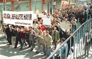 Kepenk kapatan esnaf, hükümeti protesto yürüyüşünü sürdürüyor. Polisin izinsiz olduğu gerekçesiyle engellediği eylemler Ankara, İstanbul, İzmir, İzmit ve Gaziantep'te olaysız sona ererken, Konya'daki ilk yürüyüşe polisin müdahalesi sonucu olaylar tırmandı. Esnafı uyarılarla durduramayınca panzerle su sıkan polis, esnafın taş atarak karşılık vermesi üzerine bu kez cop kullandı. Eylemciler ara sokaklara kaçıp dağılırken, 150 esnaf gözaltına alındı. Az sayıda polis ve eylemcinin yaralandığı bu olaydan sonra, şehirde farklı semtlerde yürüyüşler başladı. Bir süre sonra da çoğu 18 yaşından küçüklerin oluşturduğu bir grup yürüyüşe geçti. Polis bu gruba da müdahale etti ve 30 kişiyi daha gözaltına aldı.