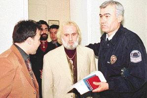 Almanya"da kendisini mesih ilan eden kapatılan Refah Partisi İstanbul eski Milletvekili Hasan Mezarcı (47), dün sabah Edirne'de İpsala Sınır Kapısı'ndan giriş yapmak isterken gözaltına alındı. Atatürk'e hakaretten hakkında kesinleşmiş hapis cezası bulunan ve Atatürk ve laiklik karşıtı konuşmalarıyla hakkında çok sayıda dava açılan Mezarcı, dün sabah saat 07.25'te İpsala Sınır Kapısı'ndan İsviçre plakalı RPO 076 plakalı cip ile giriş yaptı. Mezarcı, araçta bulunan Erkan Baran (31), Doğan Dilci (35) ve Şevket Sak (42) ile birlikte gözaltına alındı. Mezarcı ve beraberindekiler, önce sağlık kontrolü için İpsala Devlet Hastanesi'ne sevk edildi. Hastane personeli ve hastaların ilgiyle izlediği sarı takım elbiseli ve sarı uzun saçlı Mezarcı, daha sonra İpsala Emniyet Müdürlüğü'ne götürüldü.