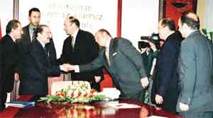 Sabah saatlerinde Meclis Başkanı Ömer İzgi'yi ziyaret eden TÜSİAD heyeti, çıkarılması düşünülen yasalarla ilgili olarak görüş alışverişinde bulundu. Görüşme sırasında TÜSİAD heyetinin görüşlerini dinleyen İzgi, bir gazetecinin, "TOBB Başkanı Fuat Miras'ın Genelkurmay Başkanı'nı ziyaretini nasıl değerlendiriyorsunuz" sorusuna, "Kendilerine sorsanız daha iyi olmaz mı? Ziyaret eden ve edilenler var. Ben bunun içinde değilim. Görmedim ve görüşmedim" karşılığını verdi. TÜSİAD Başkanı Özilhan da konuşmasında, Türkiye'nin ciddi sıkıntılar içinde olduğuna işaret ederek, bu süreçte TBMM'ye de görev düştüğünü, birçok önemli yasanın çıkma aşamasında olduğunu söyledi. Özilhan, bir gazetecinin "Siz de Genelkurmay Başkanı'nı ziyaret edecek misiniz?" sorusuna karşılık, "Şu an planlanmış böyle bir ziyaretimiz yok" dedi.