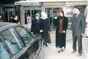 Kapatılan RP lideri Necmettin Erbakan'ın küçük kızı Elif Erbakan, önceki gün nişanlısı, annesi Nermin Erbakan ve müstakbel kayınvalidesi Fatma Altınöz ile birlikte Bursa'nın ühlü Kapalıçarşı'sın gezdi.