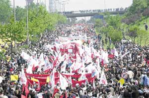 1 Mayıs İşçi Bayramı, tüm ülkede geniş katılımlarla coşkulu kutlandı. 1977'deki kanlı 1 Mayıs'ta yaşamını yitirenler anısına saygı duruşu ile başlayan mitingler, olaysız sona erdi. En geniş katılımın olduğu İstanbul'daki kutlamalarda "ilk"ler yaşandı. İlk kez bir 1 Mayıs gösterisi İstiklal Marşı okunarak başladı.