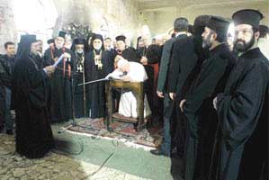 * Duayı, kilisenin yıkıntıları arasında kalan ahşap bir hacın önünde etti: "Güzelliği savaş yüzünden bozulmuş bu mekanda, kalbimin yükselmesini ve Kutsal Topraklar'a barışın gelmesi için dua etmeyi diliyorum."