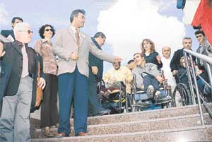 Türkiye Sakatlar Derneği üyesi bir grup bedensel özürlü, Sakatlar Haftası nedeniyle dün Galatasaray Lisesi'nin önünden Taksim Meydanı'na yürüyüş düzenledi. Atatürk Anıtı'na çelenk koyan ve metroyla bir gezinti yapmak isteyen 20 kişilik grup, kötü sürprizle karşılaştı. Bedensel özürlülerin yararlanabilmesi için gerekli düzenlemelerin yapılması unutulduğu için tekerlekli sandalyeye mahkum olan özürlü İstanbullular metronun merdivenlerinden inemedi. Bu durumu gören Sakatlar Derneği Genel Sekreteri Yılmaz Demirel, metroda ve diğer toplu taşıma araçlarında özürlüleri yok sayan Büyükşehir Belediyesi'ni eleştirdi.