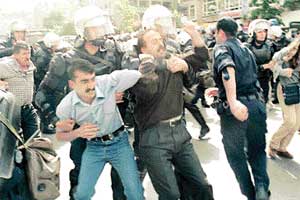 Çıkarılması planlanan sendika yasasını protesto için Ankara'ya yürüyen memurlar, kendileri gibi memur olan polislerle karşı karşıya geldiler. Şehrin girişinde önlem alan güvenlik görevlileri, mitingin yapılacağı Kızılay meydanını da barikat ve atlı polislerle çevirdi. Polislerin dövüldüğü, gözaltına alındığı eylemden sonra bir memurun küçük çocuğu polislerden dayağın hesabını sordu.