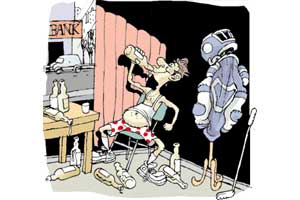 Altı yıllık 'banka soygunu kariyeri'ni tek başına yapmadı Ambrus'un ortağı Gabor Orban'dı. Hapishaneye girdikten sonra inanılmaz öyküsünü basına anlattı. Düzgün konuşan, iyi giyimli, kibar biriydi. Ancak milli buz hokeycisi olmak ona yetmemişti; "Kadınları, hızlı arabaları ve parayı çok sevdim. Bir de macerayı!" diyordu. Bankadaki güvenlik görevlilerini maskaraya çeviriyordu adamımız. 1997'de bir soygunun ardından hokey antremanına yetişmişti! Bir başka soygunda yaşlı bir kadına yere yatmasını söylemiş, ona bir güzel yardım etmiş, kadıncağız da teşekkür etmiş. Yakalanması da başka bir komedi. Soygunu yapıyor, Slovakya'ya kaçmaya hazırlanırken eve gidip köpeğini kontrol etmeye karar verince yakayı ele veriyor. Ambrus, üç yıldır hapiste ama boş durmuyor tabii. Yakında kitabı çıkacak. Ama neye yarar? Bu ayki duruşmasında 15 yıl daha hapis cezası aldı. (Details)