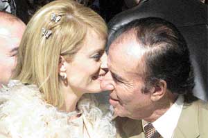 35 yaşındaki eski dünya güzeli Cecilia Bolocco ile nikah masasına oturan 'El Turco' lakaplı 70 yaşındaki Menem, düğününde 54 katlı 400 kiloluk pasta kesti
