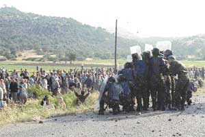 Eski adı Eurogold olan Normandy Madencilik'in Ovacık'ta test üretimine geçmesine kızan köylüler, Çamköy'de, dün saat 05.00'den itibaren toplandılar. Köylüler, Çevre Yürütme Kurulu Başkanı Oktay Konyar'ın öncülüğünde, ellerinde benzin bidonlarıyla, altın madeninin çevresindeki dağlık araziden karayoluna indiler. Burada oturarak yolu trafiğe kapatan köylülere, jandarma barikat kurarak engel olmaya çalıştı. Ardından üstlerine benzin döken köylüleri itfaiye su sıkarak karayolundan uzaklaştırmak istedi. Ancak köylüler taşla karşılık verince, ortam iyice gerginleşti. Jandarmanın copla dağıttığı köylüler bu kez yolun alt kesimine inerek taş atmaya devam ettiler. Atılan taşlar nedeniyle bir astsubay yaralandı. Bu sırada Bergamalılar'ın siyanürle altın çıkarmaya karşı yürüttükleri mücadelenin simgesi olan "Hopdediks" lakaplı Bayram Kuzu'nun bir süre önce yaşamını yitirmesinden sonra mücadelenin öncülüğünü yürüten "Asteriks" lakaplı Konyar, gözaltına alındı.