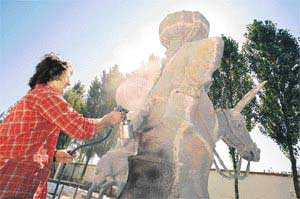 Demir ağlarla öremedik ama tunç heykellerle iyi kötü donattık anayurdu dört baştan. Akşehir Belediyesi bu konuda herhalde birinciliği kimseye kaptırmaz. Bu yıl 42'ncisi yapılan Akşehir Nasreddin Hoca Şenliği, biri üç buçuk metre olmak üzere 10 heykel daha kazandıracak memlekete. Akşehir Belediyesi tarafından yaptırılan "Gülmece Anıtı"nda Hoca'nın heykeliyle beraber Türk tiyatrosunun dokuz mizah ustasının büstü de bulunacak. Kavuklu Hamdi, Kel Hasan, Naşit Özcan, İsmail Dümbüllü, Münir Özkul, Erol Günaydın, Nejat Uygur, Müjdat Gezen ve Ferhan Şensoy, 5 Temmuz'dan itibaren Akşehir topraklarında -bir itiraz eden çıkana kadar- tunç heykel olarak boy gösterecek.