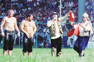 Kırkpınar güreşlerinin ünlü başcazgırı Şükrü Kayabaş'ın final maçında yaptığı anons 'seyircileri siyasileri protesto'ya sürüklediği gerekçesiyle mercek altına alındı