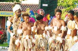 Yarı çıplak kostümleriyle danslarından örnekler sunan ekibe, Bursalılar da alkışlarıyla eşlik ettiler. Cuma günü başlayan festival çerçevesinde konuk halk dansları toplulukları şehrin farklı bölgelerinde gösteriler gerçekleştiriyor. Bu yıl festivalin en çok ilgi gören ekiplerinden biri de festivale 13 yıllık bir aradan sonra yeniden katılan Yunan Halk Dansları Topluluğu oldu.