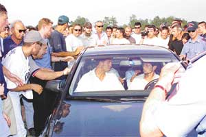 Çevresini saran fanatiklerle tartışan Hakan Şükür, bir tanesine tokat attı. Jandarmanın da araya girmesiyle arabasına binen Hakan ve futbolcularımıza, "Evinize geri dönün pis Türkler" şeklinde sloganlar atıldı.