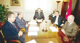 Öksüz'ün istifasını isteyerek hükümetin devam edeceği ve programa desteğin süreceği mesajını veren Bahçeli dün bir adım daha atarak uzun bir aradan sonra ilk kez Derviş'li zirveye katıldı. Bahçeli bu ilk sıcak temasta Kemal Derviş'le selamlaşıp el sıkıştı.