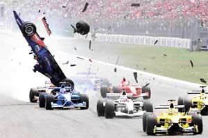 Formula 1 Dünya Şampiyonası'nın dün Hockenheim'da yapılan Almanya ayağı inanılmaz talihsizliklere sahne oldu. Yarışta finişi sadece 10 pilot görebildi. İlk saniyelerindeki kaza sebebiyle iki kez start alan yarışta favorilerden Hakkinen 15'inci turda pes etti. Yarışı ilk 21 turda önde götüren Montoya, pite girdiğinde benzin pompası çalışmayınca 30 saniye kaldı. Daha sonra da kaybettiği zamanı telafi etmeye çalışırken 26'ıncı turda motorunu patlattı.