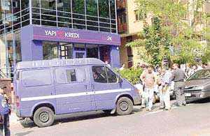 Hayret uyandıran olay, dün 16.00'da Kozyatağı İnönü Caddesi üzerindeki Yapı Kredi Bankası şubesi önünde meydana geldi. Bankadaki paralar genel merkeze götürülmek üzere zırhlı araca taşınırken aniden otomobilli kapkaççılar ortaya çıktı. Zırhlı aracın şoförü Tacettin Kuş'un elindeki para dolu torbalardan birini kapan kapkaççı, hemen arka koltukta oturan arkadaşının kucağına attı.