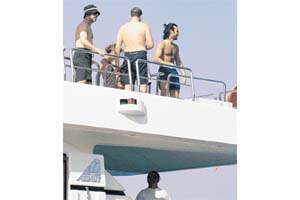 Ancak tüm basını atlatan Tarkan SABAH muhabirinden kaçamadı. Güvertede kızlarla güneşlenen Tarkan, kendisini çektiğimizi fark edince önce ne yapacağını şaşırdı.