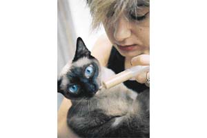 Üçüncü gün sıvı gıdaya geçiliyor. Mamayı sulandırıyorsunuz, kedi bunu yiyor. Bu aşamada Himmet'in yaptığı gibi çok naz yapabilir kediniz. Önüne koyduğunuz yemeğe hiç dokunmayabilir. Bu durumda o yemeği iğnesiz bir şırınga içinde, biberonla besler gibi vermek zorundasınız. Bizimki bundan çok hoşlandı. Öpe koklaya, agucuk gugucuk yapa yapa besledik. Böyle yapınca küskünlüğü de gitti. Anladık ki bize çok bozulmuş meğer veterinere bıraktık diye.