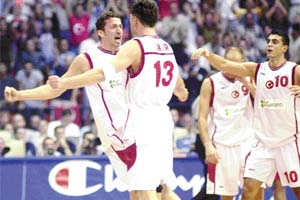 Artık tüm Türkiye'nin benimsediği adıyla, 12 Dev Adam Eurobasket 2001 çeyrek finalindeki güçlü rakibi Hırvatistan'ı uzatmalarda 87-85 yenerek, 2002'de ABD'de düzenlenecek Dünya Şampiyonası'na gitmeye hak kazandı. Özellikle ikinci yarıda milliler öyle hırslıydı ki, her basketten sonra göğüs göğüse vuruştular, formalarının yakasını çekiştirip kavga eder gibi bağırıştılar. Maçın bitmesiyle de masalara çıkıp zafer çığlıkları attılar.