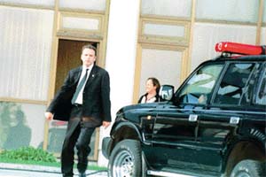 Ecevit, saat 10.00 sıralarında Başbakanlığa gitmek üzere OR-AN Sitesi'ndeki evinden çıktı ve makam otomobiline bindi. Bu sırada Ecevit'in oturduğu apartmanın yanındaki apartmanda oturan TRT yapımcısı-sunucu Seynan Levent ile karşılaştı. Aynı zamanda DTP Genel Başkanı İsmet Sezgin'in kızı olan Levent'i görünce makam aracını durduran Ecevit, nereye gittiğini sordu. Levent de TRT'deki işine gittiğini söyleyince, kendisi makam aracı ile bırakabileceğini söyledi. Bunun üzerine Başbakan'ın makam aracı konvoyu ile birlikte OR-AN Sitesi'nden Başbakanlık yolu üzerindeki TRT Binası'na dönüş yaptı. Başbakan'ın gelişinden haberdar olmayan TRT'nin güvenlik kapısındaki görevlileri hazırlıksız yakalanmanın şaşkınlığını yaşarken Levent, TRT Binası'nın önünde Başbakanlık aracından indi ve Ecevit'e teşekkür etti.