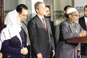 ABD Başkanı George Bush, geçen hafta ABD'de düzenlenen saldırılardan sonra Müslümanlara yönelik tepkilere son vermek amacıyla dün İslam Merkezi'ni ziyaret etti.