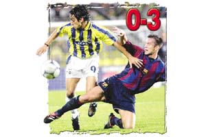 İlk 9 dakikada Ümit Özat'ın çaldığı 3 top, aynı beceriyle arkadaşlarına ulaşamayınca önemli ataklar başlamadan bitiyordu. Bundan sonra zaten Barcelona yavaş yavaş kendini göstermeye başladı. Sağda oynayan Mustafa Doğan'a yardım etmesi gereken Ogün ortaya yakın oynayınca, Barça kaptanı Sergi, elini kolunu sallaya sallaya bu koridoru otoban haline getirdi.