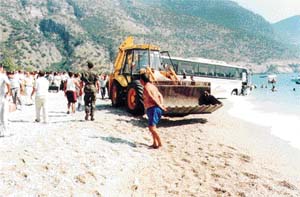 Ölüdeniz dün inanılmaz bir kazaya sahne oldu. Freni boşalan otobüs plajda güneşlenen turistlerin arasına dalınca 2 kişi öldü 8 kişi yaralandı