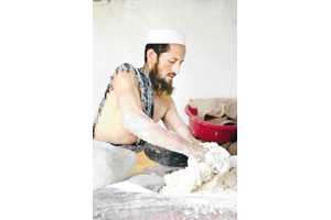 Eşref de, eli hamurlu Pakistan erkeklerinden biri. Fotoğrafı çekilince tedirginleşen Eşref, Türk olduğumuzu söyleyince geniş gülümsemesini esmer yüzüne yayıyor... Ardından beyaz dişlerini gösterip "Türki, müslim brother" diyerek selamını veriyor. O sırada yardımcısı, büyük bir dikkatle Eşref'in yaptığı hamur toplarının gramajını kontrol ediyor. Eşref'le yardımcısına Taliban'ı ve Ladin'i soruyoruz. Cevabı ilginç: "İyi bir adam. Onu seviyoruz çünkü İslam'ın savunuculuğunu yapıyor. Amerika'ya karşı çıkıyor, korkmuyor."