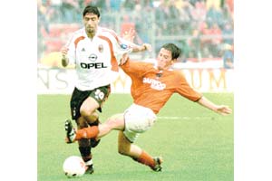 Cumartesi Juventus'un Roma'ya yenilmesiyle averajla liderliğe yükselen Milan, koltuğu korumak için kazanmak zorundaydı. Bu yüzden yüklendi, ama verilen açıkları Perugia iyi değerlendirdi. 76'da Vryzas'ın kaleye giden topuna son dokunan Tedesco idi. Geçen yıl 4-3'lük maçta hat-trick yapan Vryzas, dün de perdeyi kapatan isim oldu: 3-1. Milan, böylece 4. sıraya indi