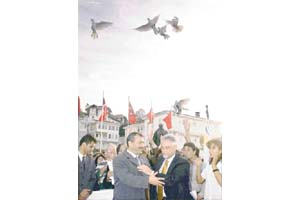 Adalar ile Atina'nın Paleo Faliro belediyeleri arasında imzalanan "kardeş belediye" protokolü için düzenlenen tören, suyun iki yakasını bir araya getirdi. Yıllar önce Büyükada'dan Atina'ya göç eden yüzlerce Rum, iki belediyenin düzenlediği organizasyonda çocukluklarını birlikte geçirdikleri eski komşularıyla bir araya gelip kucaklaştı, hasretlerini dindirdi. Devlet Bakanı Yılmaz Karakoyunlu'nun yanı sıra; İstanbul Müftüsü Necati Tayyar Baş, Fener-Rum Patriği Barthelomeos, Süryani Lideri Yusuf Çetin, Keldeni Katolik Başpiskoposu Paul Karataş, Musevi Türk Hahambaşı Moşe Benveiste, ANAP'lı milletvekilleri Sühan Özkan, Aydın Ayaydın, Ediz Hun. Cavit Kavak'ın da katıldığı törende Adalar Belediye Başkanı Coşkun Özden ile Paleo Faliro Belediye Başkanı Dimitros Kapsanis, "kardeş belediye" protokolüne imza attı. İki ülke arasındaki barışı temsilen güvercinlerin uçurulduğu törende konuklar daha sonra müzik eşliğinde eğlendi. Atina'dan; doğdukları, çocukluk ve gençlik dönemlerini yaşadıkları Büyükada'ya gelen Rumlar, yıllar önceki komşularıyla eskiden olduğu gibi coşkuyla sirtaki oynadı. Organizasyonun büyük bir anlam taşıdığına dikkati çeken Devlet Bakanı Yılmaz Karakoyunlu, "Kardeşlik protokolü barış ve dostluğu pekiştirecektir" diye konuştu.