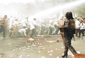 Karaçi'de ise polis gösterici grubu dağıtmak için gözyaşartıcı bomba kullandı. "Amerika İslam'ın düşmanı", "Bush teröristlerin başı" diye slogan atan göstericiler sokakları savaş alanına çevirdi. İki polis silahlı kişilerce öldürüldü.