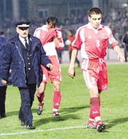 İkinci yarıda ise 75.dakikada oyuna giren Mehmet Yılmaz, 3 dakika sonra kırmızı kart gördü ve takımımızı 10 kişi bıraktı. İyi dağılan Ümitler, sahadan 3-0 yenik ayrıldı. Yunanistan'a galibiyeti getiren golleri 47'de Vakouftsis, 88'de Salpigidis ve +92'de Amanatidis kaybetti.