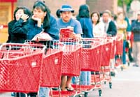 * Los Angeles Times gazetesi ise Los Angeles'taki alışveriş çılgınlığını şöyle anlattı: Best Buy süpermarketlerinin önünde sabahın ilk ışıklarından itibaren 300 kişi kuyrukta bekliyordu.