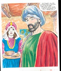 Sabah olunca koþarak Resulüllah'ýn yanýna indi. Yemeðini takdim etti. Resulüllah gülümseyerek sordu: