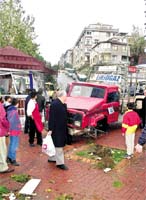 AvcılarAmbarlı Mahallesi'nde sürücüsünün rampada bıraktığı bir tüp kamyonu haraket ederek 220 metre ilerledikten sonra büfeye çarptı.