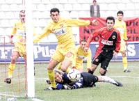 Maçın 32. dakikasında Korhan'ın arka direğe yaptığı ortaya Mustafa kafayı vurdu. Meşin yuvarlak Patrick'in de müdahalesiyle yan direkten döndü.