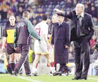 G.Saray Teknik Direktörü Lucescu, +91'de Hakan Ünsal'ın kırmızı kartla oyun dışı kalması üzerine köpürdü. Düdükten sonra topu vurup ikinci sarı kartla oyun dışı kalan Hakan kenara gelirken çok ağır hareket edince Lucescu kulübeden fırlayıp "Acele etsene" diye fırça attı. Hakan da yanıt vermeye kalkınca kısa bir gerginlik yaşandı.