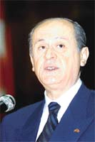 Bahçeli ise, şunları söyledi: "Tek başına iktidar olmadığımızı unutmayın. Eğer tek başına iktidar olsaydık, programımızı taviz vermeden uygulardık. Ama şu anda üç partiden oluşan bir koalisyon var. Türkiye'nin şu anda kavgaya, yumruğa değil, uzlaşmaya, uyumlu çalışmaya, Türkiye'nin refomlara ihtiyacı var. Elbette taviz veremeyeceğimiz konularda da fikrimizi açıkça söylemekten çekinmeyiz, partimiz üzerinden kimseye siyaset yaptırmayız."