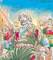 Dalakýlýç yine saldýrdý Rum askerine. Kahramanca vuruþuyor ve önüne çýkaný kanlar içinde yere yýkýyordu. Bir ara etrafýný büyük bir kalabalýðýn çevirdiðini hissetti. Her yandan gelen saldýrýlara karþý koymakta güçlük çekmeye baþladý. Nihayet birçok yerinden aldýðý kýlýç yaralarý ile isteðine ulaþarak þehid oldu. Rumlar vücudunu ikiye ayýrdýklarý halde yüzü hâlâ Rabbine hamd eder gibi gülüyordu.