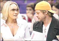 Ünlü yıldız fanatik hayranı olduğu Los Angeles Lakers'ın maçını izlediği sırada yanına yaklaşan güzel sarışın, Pitt'ten imza istedi. Hayranını kıramayan Pitt, kendisine uzatılan deftere imzayı atarken gözlerini de güzel kadının derin göğüs dekoltesinden ayıramadı. İnşallah eşi Jennifer Aniston bu kareyi görmez!