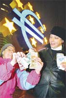 12 Avrupa ülkesinin halkı yeni yılın ilk dakikasından itibaren bankadan euro çekerek merakını giderdi. Kimi kokladı, kimi dokundu, kimi alışveriş yaptı