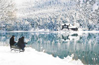 Parkurda 300 - 400 metre aralıklarla suya açılan iskelelere rastlıyoruz. Gerçek bir seyir istasyonu bu duraklar. Her birinden görülen manzara aynı olmasına aynı ama sanki sudaki küçük titreşimler görüntüyü de bambaşka bir evrene doğru kaydırıyor. Gölde nazlı nazlı gezinen kuğuların zerafetine, piknik yapan gençlerin gözlerindeki ışıltıya, kuşların telaşlı uçuşlarına ve uzaktan çikolatadan yapılma evleri andıran iki katlı ahşap köşke gözümüz takılıyor...
