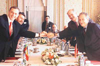 İslam Konferansı Örgütü ile Avrupa Birliği Ortak Forumu kapsamında biraraya gelen Dışişleri Bakanı İsmail Cem, Yunanistan Dışişleri Bakanı Yorgo Papandreu, Bulgaristan Dışişleri Bakanı Solomon Passi ve Romanya Dışişleri Bakanı Mircea Geoana, dün Çırağan Sarayı'nda biraraya gelerek dörtlü bir toplantı yaptı.