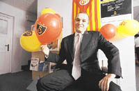 Serhan Eryüksel Galatasaray Sportif AŞ'nin halka arzını gerçekleştiren Global Menkul Değerler'in Kuruçeşme İrtibat Bürosu Sorumlusu. Büroyu sarı-kırmızı renklerle öyle bir süslemiş ki, "Benim" diyen Galatasaraylı'ya taş çıkartır. Ancak Eryüksel'in gönlünde yatan renkler sarı-lacivert. "Her şey iyi de, büronun önünden geçen tanıdıklar hemen telefona sarılıyor ve 'Doğru yolu bulduğuna sevindik' diye takılıyorlar. Bu biraz vicdan azabı veriyor" diyor Eryüksel.