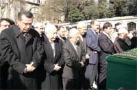 Uzun süre Ankara Tıp Fakültesi Hastanesi'nde cildiye uzmanı olarak görev yapan Prof. Dr. Nizamettin Erbakan'ın cenazesi dün sabaha karşı İstanbul'a getirildi. Fatih Camii'ndeki cenaze törenine Erbakan Ailesi'nin yanı sıra, çok sayıda siyasi ve vatandaşlar katıldı. Cenaze namazı, Milli Görüş'ün 3 lideri Necmettin Erbakan, FP Genel Başkanı Recai Kutan ve AKP Genel Başkanı Recep Tayyip Erdoğan'ı bir araya getirdi. Namaz sırasında yan yana saf tutan 3 lider birbiriyle hiç konuşmadı. Erdoğan, camiye gelince karşılaştığı Erbakan'ın elini sıktı ama öpmedi ve hiç konuşmadı. Cenaze namazı boyunca bitkin olduğu gözlenen Erbakan zaman zaman ayakta durmakta zorlandı. Ağlamamak için kendini zor tutan Erbakan, namazın ardından ağabeyinin tabutunu bir süre taşıdı. Cenaze, Merkezefendi Kozlu Mezarlığı'nda toprağa verildi. Bu arada cenaze namazına katılanlar arasında önceki gün cezaevinden çıkan Yeni Asya Gazetesi İmtiyaz Sahibi Mehmet Kutlular da dikkat çekti.