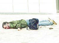 Suat'la kavgasının dozunu arttıran Engin, bu sefer kendi silahını ateşleyerek Suat'ı iki kurşunla yaraladı. Bir anda bankanın içi kanlar içinde kalmıştı. Silah sesi üzerine vezneden paraları almış olan Mustafa arkadaşının halini gördü; güvenlik görevlisi Engin'in üzerine yürüyerek onu hem dövüp hem de elindeki tabanca ile yüzüne vurmaya başladı. Aldığı kurşun yaralarına rağmen düşmeyen ve gücünü kaybetmeyen Suat da kavgaya devam edince güvenlik görevlisi Engin yüzüne aldığı darbelerle yere düştü.