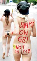 Göstericiler, attıkları sloganlarda 3'üncü dünyanın dış borç yükünün azaltılması ve çevrenin korunmasını talep etti, G-8'i yoksul ülkeleri istismar ederek kâr sağlamakla suçladı. Yürüyüş sırasında en çok "Onlar 8 kişi ama biz milyarlarcayız" ve "G-8 direnişi için omuz omuza" sloganları duyuldu.