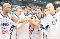 Basketbol Ligi'nde şampiyonu belirleyecek olan final serisinde Efes, Ülker karşısında 2.maçı da 87-80 kazanıp seride 3-1 üstünlük sağladı. Lacivert-beyazlılar, çarşamba günkü maçı da alırsa şampiyonluğu kucaklayacak. Çekişme yaşanan maçın ilk periyodu 18-18 eşitlikle bitti. 2.periyodun sonunda 7-0'lık seriyle Ülker 38-29 öne fırladı. Efes 1 dakika içinde 8-0'lık seriyle dengeyi kurdu. Devre Granger'in üçlüğüne rağmen 38-37 Ülker lehine kapandı. Clark bu yarıda 16 sayıyla Efes'i sırtladı.