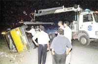 Çarpmanın etkisiyle kontrolden çıkan dolmuş takla atmaya başladı. İçerisinde dokuz kişi bulunan araç, yol kenarındaki bariyerlere çarparak durabildi. Bu arada BMW'nin şoförü ardına bakmadan hiçbir şey olmamış gibi yoluna devam etti.