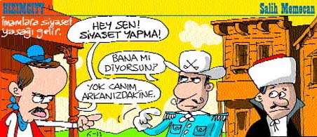 "Siyasete din karıştırıyor" denen AKP, siyaset yapan imamı işten çıkarmayı yasa hükmü yapıyor. Hükümet, Diyanet İşleri Başkanlığı Teşkilat Yasa Tasarısı'nda yıllardır var olan bir yapıyı laikleştiriyor. Tasarıya göre bir siyasi partiyi ya da görüşü öven imam ve Diyanet görevlilerinin işine son verilecek. Tasarıyla, siyasetin camilerden elini çekmesi yolunda, biçimsel de olsa bir adım atılmış olacak. Bu konudaki son yasal düzenleme 20 yıl önce yapılmış, yürürlüğe bile girmeden Anayasa Mahkemesi tarafından iptal edilmişti. Sonraki dönemlerde de Diyanet Teşkilat Yasası'na ilişkin çalışmalar Meclis'ten geçmedi. "Siyasetçi imam"ı görevden alma girişimlerinin çoğu sonuçsuz kaldı... Tüm metin Ekselans gibi polis aranıyor Taksim'deki konsolosluk binasını Sarıyer İstinye'deki yeni yerine taşımaya hazırlanan Amerikan Konsolosluğu, yarın görkemli bir törenle hizmete açacağı 'Kartal Yuvası'na güvenlik görevlisi arıyor. Terör uzmanı polis memuru ya da polislikten emekli kişilerin öncelikli olarak işe... TÜRKİYE'DE Ford'un son bombası İhracat rekoruna koşan otomotiv sektörü bir başarıya daha imza attı. Ford Otosan 5 yıllık bir çalışmanın ürünü olan Ford Cargo kamyonu ve Türkiye'de ilk kez sıfırdan üretilen ECOTORQ dizel motoru gün ışığına çıkardı. Şirketin yeni ağır vasıta aracı, Ford Otosan'ın Eskişehir İnönü... EKONOMİ'DE NATO, Türkiye'ye "evet" diyecek NATO Savunma Bakanları Konseyi öncesinde, ittifakın yeni yapısına ve Türkiye'ye daha fazla pay verildiğine ilişkin Yunanistan'ın itirazları sorun yaratıyor. Üye ülkelerin Savunma Bakanları, 12-13 Haziran'da Brüksel'de, ilkbahar dönemi olağan toplantılarını yapacak... DÜNYA'DA Sakın ha Sayın Erdoğan Malezya Başbakanı Muhatir Muhammed'in davetlisi olarak Perşembe günü Malezya'ya gidecek olan Başbakan Tayyip Erdoğan'a, bu ülkede dikkat edilmesi gereken kurallar ile ilgili bilgi notu sunuldu. Bilgi notunda, resmi görüşmeler sırasında "ayak ayak üstüne atılmaması, işaret... POLİTİKA'DA Darphane gibi takım Bu akşam Makedonya ile Euro 2004 elemelerindeki kritik maçlarından birine çıkacak olan A Milli Takımımız elde ettiği süper başarıların yanı sıra milyonlarca dolarlık geliriyle de göz kamaştırıyor. Özellikle 2002 Dünya Kupası'nda üçüncü olduktan sonra sponsorların gözbebeği haline... SPOR'DA