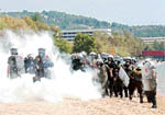 Bazıları, 3 yıl önce Ege'de batıp 80 kişiye mezar olan gemi kazasını, bazıları ABD Büyükelçiliği'nde Irak Savaşı'nı, bazılarıysa AB'nin yeni göçmen politikasını protesto etti. Ancak en kritik olaylar, Marmaras'ta, yani zirvenin yapıldığı Port Carras'ın 3 kilometre yakınlarında meydana geldi. Zirve merkezine 130 kilometre uzaklıkta olan Selanik'ten Porta Carras'a ilerleyen 4 bin gösterici, polisle çatıştı. Polis, göstericilere tazyikli su püskürtü. Yunan polisi ise liderlerin "keyfi kaçmasın" diye sıkı önlemler aldı. Liderlerin otelinin bulunduğu Maramas plajına füze bataryaları kuruldu. Polis, "Bu, füze ya da kamikaze saldırılarına karşı alınmış bir önlemdi" derken, 26 Sahil Güvenlik botu da devriye gezdi.